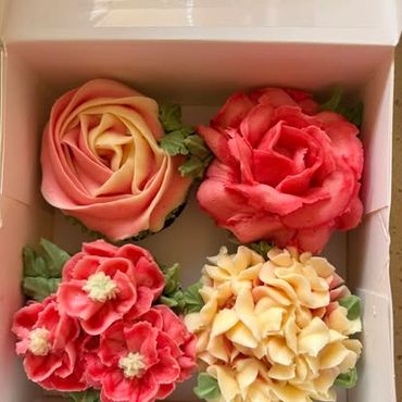 Fresh sponge, traditional buttercream, flower decoration, bouquet box